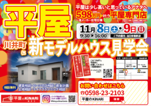 11/8-9【松阪市川井町】新平屋モデルハウス見学会